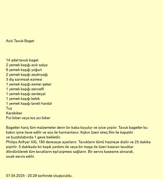 Philips Airfryer XXL 180 dereceye ayarlanır. Tavukların tümü hazneye dizilir ve 25 dakika pişirilir. 5 dakikada bir kaşık yardımı ile veya bir maşa ile üzeri kızaran tavuklar döndürülerek tüm tavukların eşit pişmesi sağlanır. Bir servis kasesine alınarak, sıcak servis edilir.