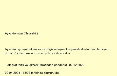 Ayva dolması (Nevşehir) tarifi, İç Anadolu Yemekleri bölümüne ait bir tariftir.