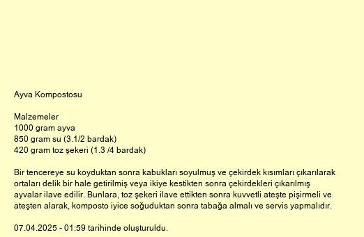 Bir tencereye su koyduktan sonra kabukları soyulmuş ve çekirdek kısımları çıkarılarak ortaları delik bir hale getirilmiş veya ikiye kestikten sonra çekirdekleri çıkarılmış ayvalar ilave edilir. Bunlara, toz şekeri ilave ettikten sonra kuvvetli ateşte pişirmeli ve ateşten alarak, komposto iyice soğuduktan sonra tabağa almalı ve servis yapmalıdır.