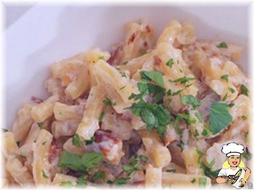 Makarnamız pişti. Hazırladığımız kremalı sosla birleştiriyoruz ve güzelce karıştırıyoruz.