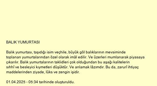 Balık yumurtası, taşıdığı isim veçhile, büyük göl balıklarının mevsiminde toplanan yumurtalarından özel olarak imâl edilir. Ve üzerleri mumlanarak piyasaya çıkarılır. Balık yumurtalarının taklidleri çok olduğundan bu aşağı kalitelerin sıhhî ve besleyici kıymetleri düşüktür. Ve anlamak lâzımdır. Bu da, zarurî ihtiyaç maddelerinden ziyade, lüks ve zengin işidir.