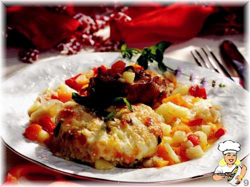 Servis tabağına bir parça incik dizmesi, bir parça bayat ekmek püresi yerleştirerek servis yapın.