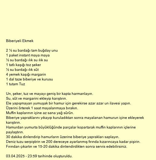 Biberiye yapraklarını yıkayıp kuruladıktan sonra mayalanan hamurun içine ekleyerek karıştırın.