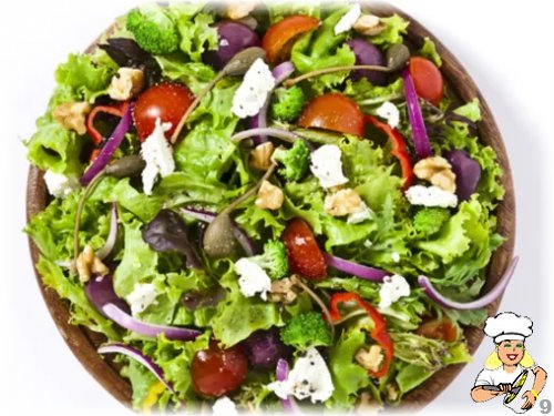 Üzerine brokoli, domates, mor soğan, zeytin ve cevizi ekle.