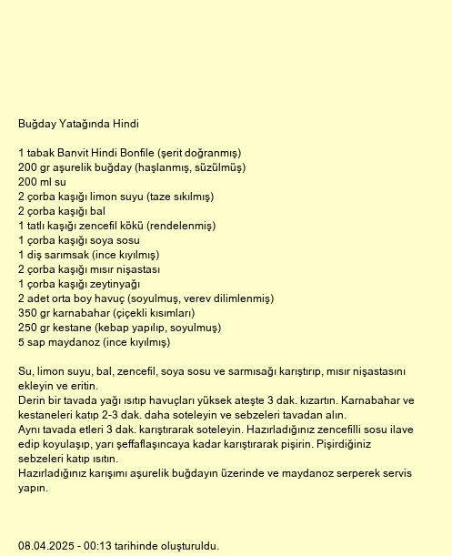 Aynı tavada etleri 3 dak. karıştırarak soteleyin. Hazırladığınız zencefilli sosu ilave edip koyulaşıp, yarı şeffaflaşıncaya kadar karıştırarak pişirin. Pişirdiğiniz sebzeleri katıp ısıtın.