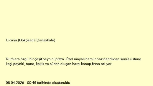 Cicirya (Gökçeada Çanakkale) tarifi, Rum Yemekleri bölümüne ait bir tariftir.