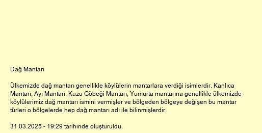 Ülkemizde dağ mantarı genellikle köylülerin mantarlara verdiği isimlerdir. Kanlıca Mantarı, Ayı Mantarı, Kuzu Göbeği Mantarı, Yumurta mantarına genellikle ülkemizde köylülerimiz dağ mantarı ismini vermişler ve bölgeden bölgeye değişen bu mantar türleri o bölgelerde hep dağ mantarı adı ile bilinmişlerdir.