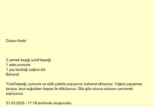 Yulaf kepeği, yumurta ve sütü çatalla çırpıyoruz, baharat ekliyoruz. Yağsız yapışmaz tavaya, tava soğukken kepçe ile döküyoruz. Göz göz olunca arkasını çevirerek pişiriyoruz.
