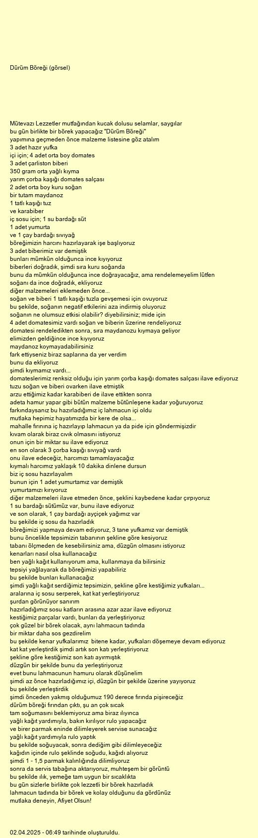 bu gün birlikte bir börek yapacağız "Dürüm Böreği"