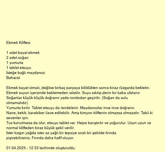 Ekmek suyun içersinde beklemeden ıslatılır. Suyu sıkılıp,derin bir kaba ufalanır.