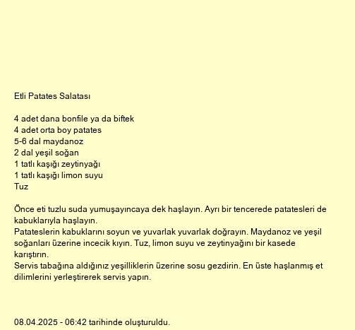 Önce eti tuzlu suda yumuşayıncaya dek haşlayın. Ayrı bir tencerede patatesleri de kabuklarıyla haşlayın.