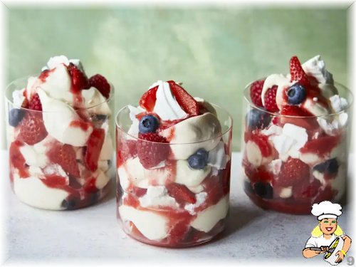 Bir kapta çilek, krema ve beze parçalarını nazikçe karıştırın.