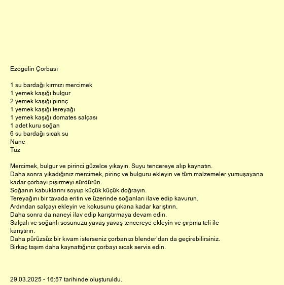 Birkaç taşım daha kaynattığınız çorbayı sıcak servis edin.
