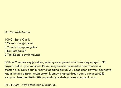 Sütü ve 2 yemek kaşığı şekeri, şeker iyice eriyene kadar kısık ateşte pişirin. Gül suyunu sütün içine karıştırın. Peynir mayasını karıştırmadan önce tencereyi ateşten alın. Sütü derin bir servis tabağına dökün. 2-3 saat, üzeri kaymak tutuncaya kadar ılımaya bırakın. Artan şekeri kremayla karıştırdıktan sonra yavaşça sütlü karışımın üzerine dökün. Gül yapraklarıyla süsleyip servis yapabilirsiniz.