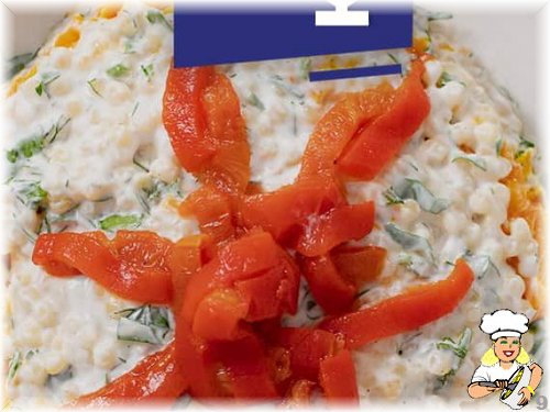 Havuçlu kuskus salatamızı kırmızı köz biber ile birlikte süsleyerek servis ediyoruz.