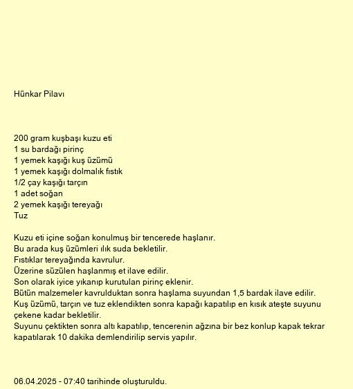 Suyunu çektikten sonra altı kapatılıp, tencerenin ağzına bir bez konlup kapak tekrar kapatılarak 10 dakika demlendirilip servis yapılır.