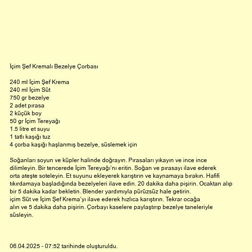Soğanları soyun ve küpler halinde doğrayın. Pırasaları yıkayın ve ince ince dilimleyin. Bir tencerede İçim Tereyağı’nı eritin. Soğan ve pırasayı ilave ederek orta ateşte soteleyin. Et suyunu ekleyerek karıştırın ve kaynamaya bırakın. Hafifi tıkırdamaya başladığında bezelyeleri ilave edin. 20 dakika daha pişirin. Ocaktan alıp bir 5 dakika kadar bekletin. Blender yardımıyla pürüzsüz hale getirin.