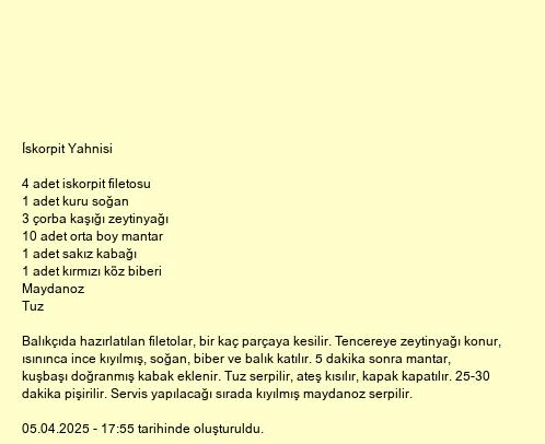 Balıkçıda hazırlatılan filetolar, bir kaç parçaya kesilir. Tencereye zeytinyağı konur, ısınınca ince kıyılmış, soğan, biber ve balık katılır. 5 dakika sonra mantar, kuşbaşı doğranmış kabak eklenir. Tuz serpilir, ateş kısılır, kapak kapatılır. 25-30 dakika pişirilir. Servis yapılacağı sırada kıyılmış maydanoz serpilir.