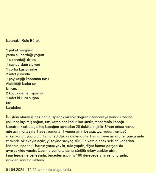 İlk işlem olarak iç hazırlanır: Ispanak yıkanır doğranır, tencereye konur, üzerine çok ince kıyılmış soğan, tuz, karabiber katılır, karıştırılır, tencerenin kapağı kapatılır, kısık ateşte hiç kapağını açmadan 20 dakika pişirilir. Unun ortası havuz gibi açılır, ortasına 1 adet yumurta, 1 yumurtanın beyazı, tuz, yoğurt, sıvıyağ, sirke, konur, yoğrulur. Hamur 20 dakika dinlendirilir, hamur ikiye ayrılır, her parça unlu zeminde oklavayla açılır, yüzeyine sıvıyağ sürülür, kare olacak şekilde kenarları katlanır, ıspanaklı harcın yarısı yayılır, rulo yapılır, diğer hamur parçası da aynı şekilde yapılır. Üzerine yumurta sarısı sürülür dikey çizikler atılır. Fırın tepsisine yerleştirilir, önceden ısıtılmış 190 derecede altın rengi pişirilir, ılıdıktan sonra dilimlenir.