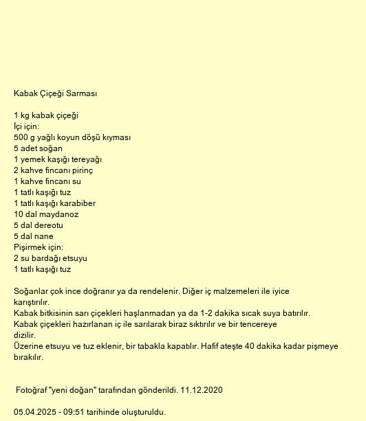 Kabak bitkisinin sarı çiçekleri haşlanmadan ya da 1-2 dakika sıcak suya batırılır.