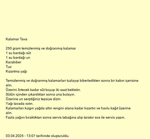 Kalamarları kızgın yağda altın rengini alana kadar kızartın ve havlu kağıt üzerine alın.