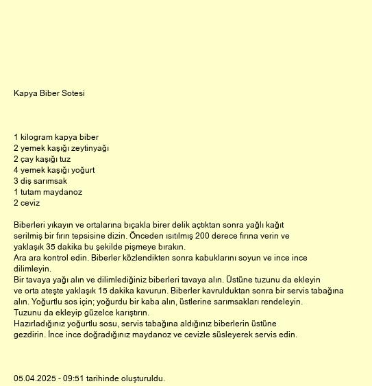 Hazırladığınız yoğurtlu sosu, servis tabağına aldığınız biberlerin üstüne gezdirin. İnce ince doğradığınız maydanoz ve cevizle süsleyerek servis edin.