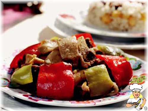 İri doğranmış kayın mantarını, yarım ay şeklinde doğradığınız soğanı, iri küpler halinde doğradığınız kırmızı-yeşil biberi, tuzu ve son olarak karabiberi ilave edip biraz soteleyin.