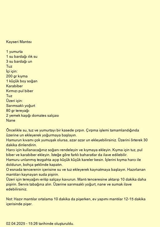 Not: Hazır mantılar ortalama 10 dakika da pişerken, ev yapımı mantılar 12-15 dakika içerisinde pişer.