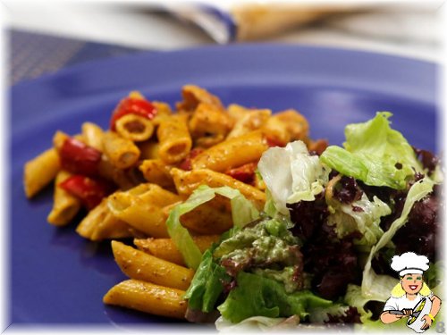 Son olarak yeşilliklerimizi doğrayıp, nar ekşisi, zeytinyağı, tuz ve karabiber ile lezzetlendirdiğimiz pratik bir salata hazırlıyoruz. İşte bu kadar! Artık Köri Soslu Penne ve salatamız servise hazır.