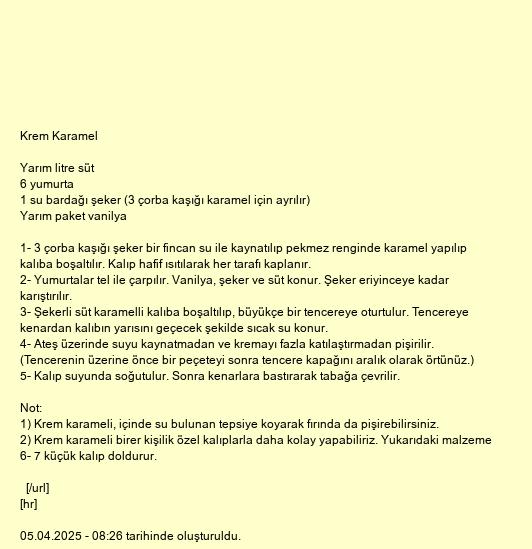 1) Krem karameli, içinde su bulunan tepsiye koyarak fırında da pişirebilirsiniz.