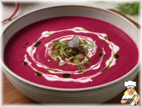 Kremalı pancar çorbasını üzerine birkaç damla krema gezdirerek, taze çekilmiş karabiber veya dereotu ile servis edebilirsiniz.