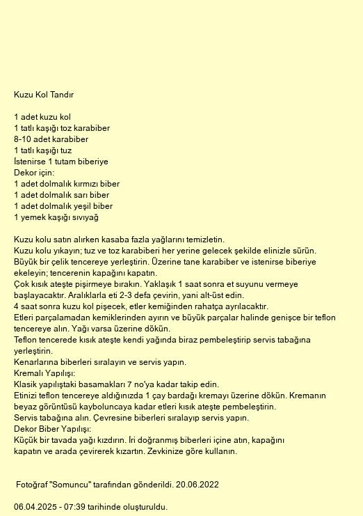 Kuzu kolu yıkayın; tuz ve toz karabiberi her yerine gelecek şekilde elinizle sürün.