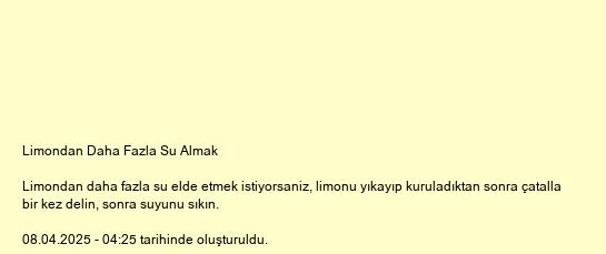 Limondan Daha Fazla Su Almak tarifi, Aşçılığın Püf Noktaları bölümüne ait bir tariftir.