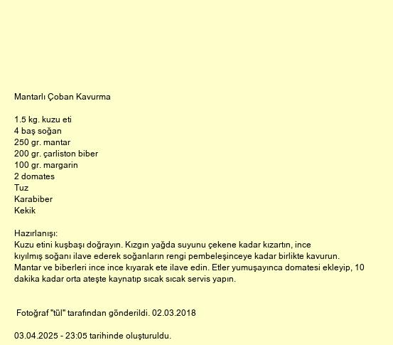 Kuzu etini kuşbaşı doğrayın. Kızgın yağda suyunu çekene kadar kızartın, ince kıyılmış soğanı ilave ederek soğanların rengi pembeleşinceye kadar birlikte kavurun.