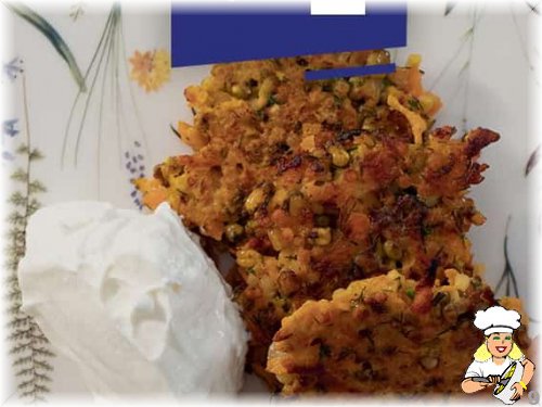Maş fasulyeli havuç mücverimizi bir dondurma kaşığı yardımıyla porsiyonlayarak tavaya alıyoruz.