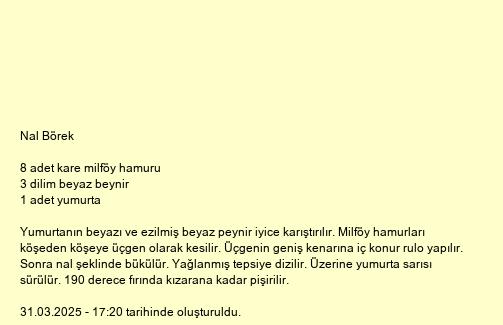 Yumurtanın beyazı ve ezilmiş beyaz peynir iyice karıştırılır. Milföy hamurları köşeden köşeye üçgen olarak kesilir. Üçgenin geniş kenarına iç konur rulo yapılır. Sonra nal şeklinde bükülür. Yağlanmış tepsiye dizilir. Üzerine yumurta sarısı sürülür. 190 derece fırında kızarana kadar pişirilir.