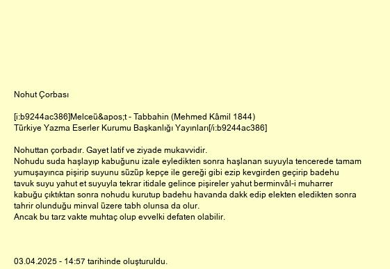 Nohuttan çorbadır. Gayet latif ve ziyade mukavvidir.