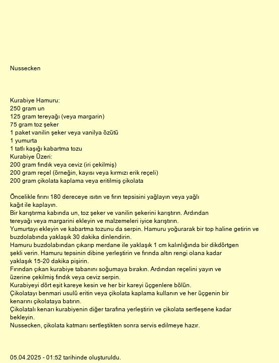 Nussecken, çikolata katmanı sertleştikten sonra servis edilmeye hazır.