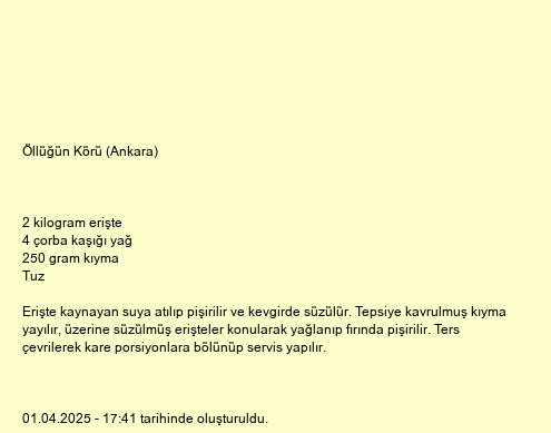 Erişte kaynayan suya atılıp pişirilir ve kevgirde süzülür. Tepsiye kavrulmuş kıyma yayılır, üzerine süzülmüş erişteler konularak yağlanıp fırında pişirilir. Ters çevrilerek kare porsiyonlara bölünüp servis yapılır.