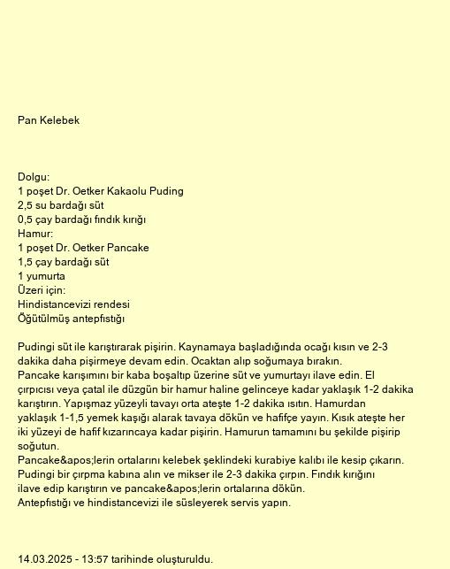 Pancake'lerin ortalarını kelebek şeklindeki kurabiye kalıbı ile kesip çıkarın.