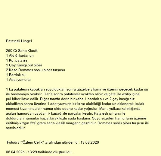 1 kg patatesin kabukları soyulduktan sonra güzelce yıkanır ve üzerini geçecek kadar su ile haşlamaya bırakılır. Daha sonra patatesler ocaktan alınır ve çatal ile ezilip içine pul biber ilave edilir. Diğer tarafta derin bir kaba 1 bardak su ve 2 çay kaşığı tuz ekledikten sonra üzerine 1 adet yumurta kırılır ve alabildiği kadar un eklenerek, kulak memesi kıvamında bir hamur elde edene kadar yoğrulur. Mantı yufkası kalınlığında açılan hamurdan çaydanlık kapağı ile parçalar kesilir. Patatesli iç harcı ile doldurulan hamurlar kapatılarak tuzlu suda haşlanır. Suyu süzülen hamurların üzerine eritilmiş kızgın 250 gram sana klasik margarin gezdirilir. Domates soslu biber turşusu ile servis edilir.