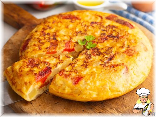 Patatesleri ince dilimler halinde doğrayın. Soğanı küçük küpler halinde doğrayın. Soğan ve patates dilimleri 3 yemek kaşığı zeytinyağda kızartılır. Sonra sarımsak ve tavaya konup kızarma işlemi devam eder.ekleyin. Kıyılmış maydanozlar eklenir.. Tuz ve karabiber ile yumurta kırp ekleyin. Biraz tereağıda koyup omletin pişmesi için kapağı kapatın. 4-5 dakika sonra omletinizi kontrol edin.