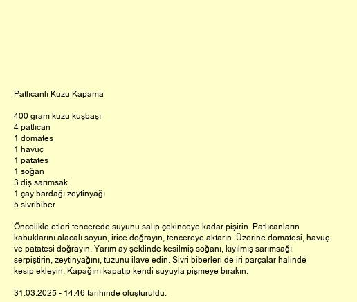 Öncelikle etleri tencerede suyunu salıp çekinceye kadar pişirin. Patlıcanların kabuklarını alacalı soyun, irice doğrayın, tencereye aktarın. Üzerine domatesi, havuç ve patatesi doğrayın. Yarım ay şeklinde kesilmiş soğanı, kıyılmış sarımsağı serpiştirin, zeytinyağını, tuzunu ilave edin. Sivri biberleri de iri parçalar halinde kesip ekleyin. Kapağını kapatıp kendi suyuyla pişmeye bırakın.