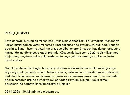 PİRİNÇ ÇORBASI