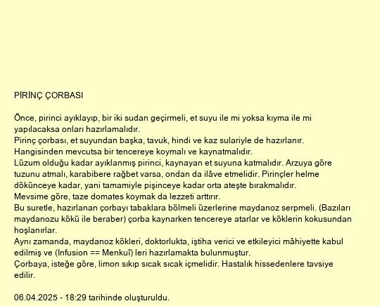PİRİNÇ ÇORBASI