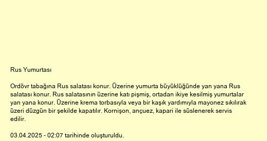 Ordövr tabağına Rus salatası konur. Üzerine yumurta büyüklüğünde yan yana Rus salatası konur. Rus salatasının üzerine katı pişmiş, ortadan ikiye kesilmiş yumurtalar yan yana konur. Üzerine krema torbasıyla veya bir kaşık yardımıyla mayonez sıkılırak üzeri düzgün bir şekilde kapatılır. Kornişon, ançuez, kapari ile süslenerek servis edilir.