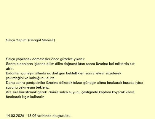 Ara sıra karıştırmak gerek. Sonra salça suyunu çektiğinde kaplara koyarak kilere bırakarak kışın kullanılır.