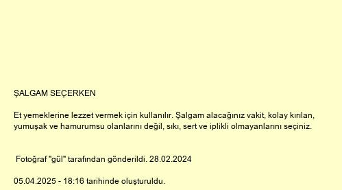 ŞALGAM SEÇERKEN tarifi, Aşçılığın Püf Noktaları bölümüne ait bir tariftir.