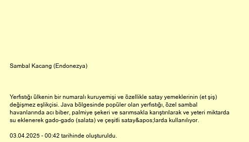 Yerfıstığı ülkenin bir numaralı kuruyemişi ve özellikle satay yemeklerinin (et şiş) değişmez eşlikçisi. Java bölgesinde popüler olan yerfıstığı, özel sambal havanlarında acı biber, palmiye şekeri ve sarımsakla karıştırılarak ve yeteri miktarda su eklenerek gado-gado (salata) ve çeşitli satay'larda kullanılıyor.