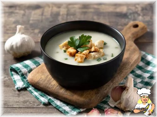 Sarımsak çorbasını üzerine kızdırılmış tereyağı ve pul biber gezdirerek veya kruton ekleyerek servis edebilirsiniz.
